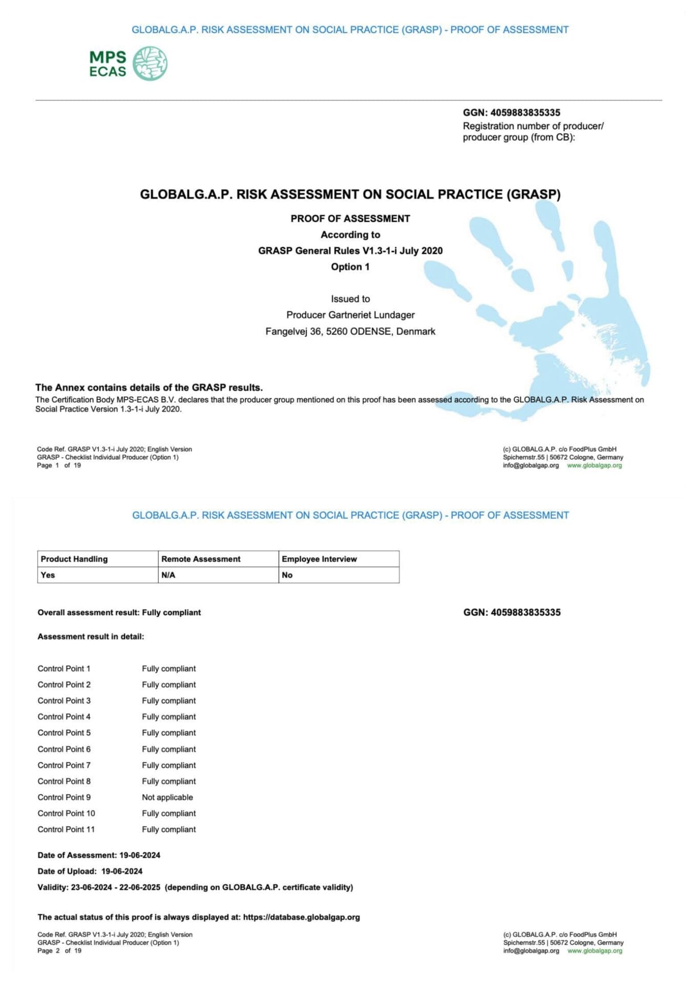 Certyfikaty dla Gartneriet LUNDAGER